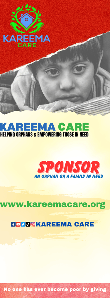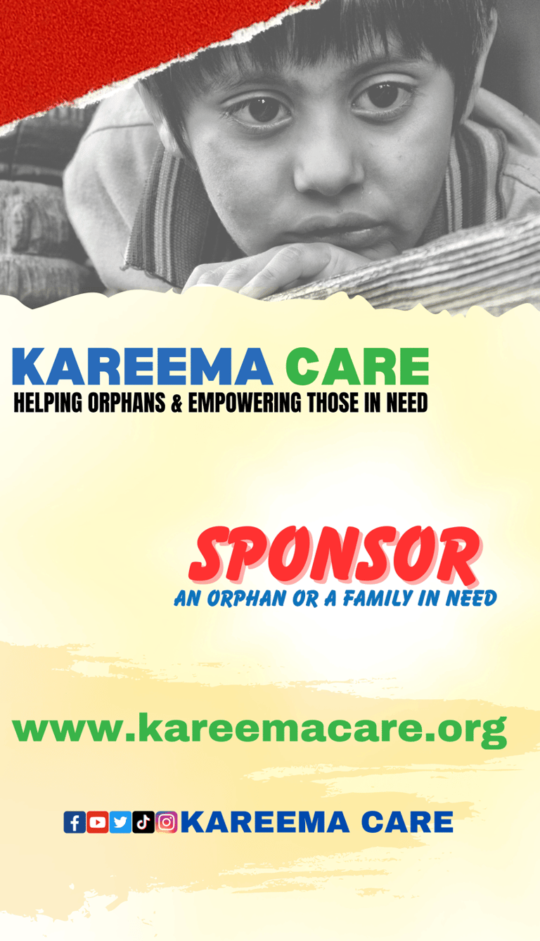 We are those who are concerned for the well-being of others, in particular, orphans and those who are struggling. We are the hearts that palpitate when a child is deprived of love and care, when a family wonders how they can sustain without basic necessities in life, when even “hope” is considered a luxury. Kareema Care believes in Generosity and Care as two crucial components in touching people's lives. We are Your opportunity to materialize your goodness, care, compassion and kindness by joining us to help others and to make it a reality.